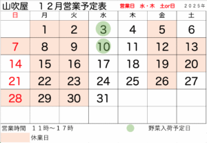 1月営業予定表です。
